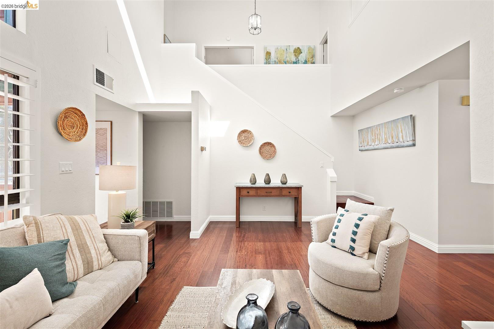 806 Ironwood Road, Alameda--where modern comfort meets an unbeatable location in the heart of Harbor Bay Isle, one of Alameda's most sought-after neighborhoods. This single-family residence in a planned unit development, is a duet-style townhouse with just one shared wall, allowing sunlight to stream in from three sides. A warm fireplace anchors the living room, while vaulted ceilings create a sense of openness. A stunning chandelier bathes the dining room in a soft, welcoming light, radiating classic elegance. The kitchen flows seamlessly into a cozy family room that opens onto a private patio--perfect for morning coffee or evening relaxation. A convenient half bath and a two-car garage round out the main level, blending functionality with comfort. Upstairs, you'll find two en-suite bedrooms, each with its own bathroom for privacy and convenience, all within an airy, open-concept layout featuring soaring cathedral ceilings. The primary suite is a true retreat, boasting vaulted ceilings, a walk-in closet, and a private balcony. Imagine starting your day with sunshine and a cup of tea or unwinding under the stars in your own serene space. Nestled in a quiet, peaceful setting with minimal traffic, this home offers a strong sense of community and tranquility, all while being close to everything Harbor Bay Isle has to offer. Living in Harbor Bay Isle isn't just about owning a home--it's about embracing a lifestyle. Enjoy access to a swimming pool, spa, pickleball courts, serene lagoon trails, and the stunning views along the SF Bay Trail. Commuting is a breeze with the SF Ferry, express transbay buses, and free shuttles to BART. And as a bonus, the home is located in a top-rated school district. Bright, welcoming, and perfectly situated, 806 Ironwood Road is an Alameda treasure just waiting to be called home. Don't miss your chance!